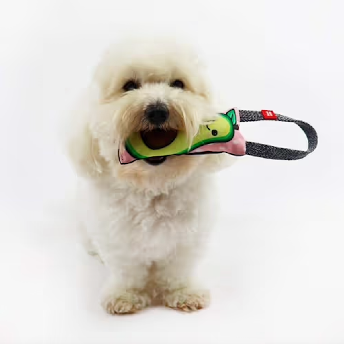 Le boudin chien WAUDOG est un jouet pour chien amusant et solide. Ce boudin pour chien original est idéal à tirer et à lancer grâce à la anse solide facile à prendre en main. Ce jouet pour chiots et pour chiens renferme un ou plusieurs couineurs selon la taille, pour encore plus de fun avec votre compagnon et pour stimuler au jeu les chiens les plus paresseux ! Son design aux couleurs vives et aux modèles drôles à l'effigie d'avocat ou macarons en font un cadeau pour chien original pour Noël, l'anniversaire de votre toutou et toutes les occasions. Tous les chiens vont avoir envie de le croquer, mais sa surface lisse rend ce jouet plus durable : le matériau choisi pour la surface extérieure est lisse et résistant à l'usure. Il a été spécialement conçu pour que le chien attrape le jouet dans la gueule, et ce matériau légèrement glissant évite que le chien insère ses crocs dans le tissu comme dans un boudin pour chien classique. La couche extérieure et la poignée sont faciles à nettoyer. Le rembourrage est obtenu à partir d'un matériau synthétique hypoallergénique et répulsif contre les mites et autres acariens.