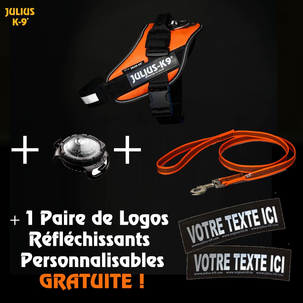 L'incontournable coffret JULIUS-K9® existe désormais dans une version LUMINO™ optimisant la visibilité du chien: la meilleure idée cadeau de Julius-K9® pour votre animal préféré ! Ce coffret cadeau Julius-K9® pour chien comprend: 1 harnais IDC®POWER (taille et couleur au choix) + 1 laisse IDC® Color&Gray de largeur 18-20 mm et de longueur 1,20 m avec poignée + 1 lampe orbiloc + une paire de logos réfléchissante avec nom au choix OFFERTE.