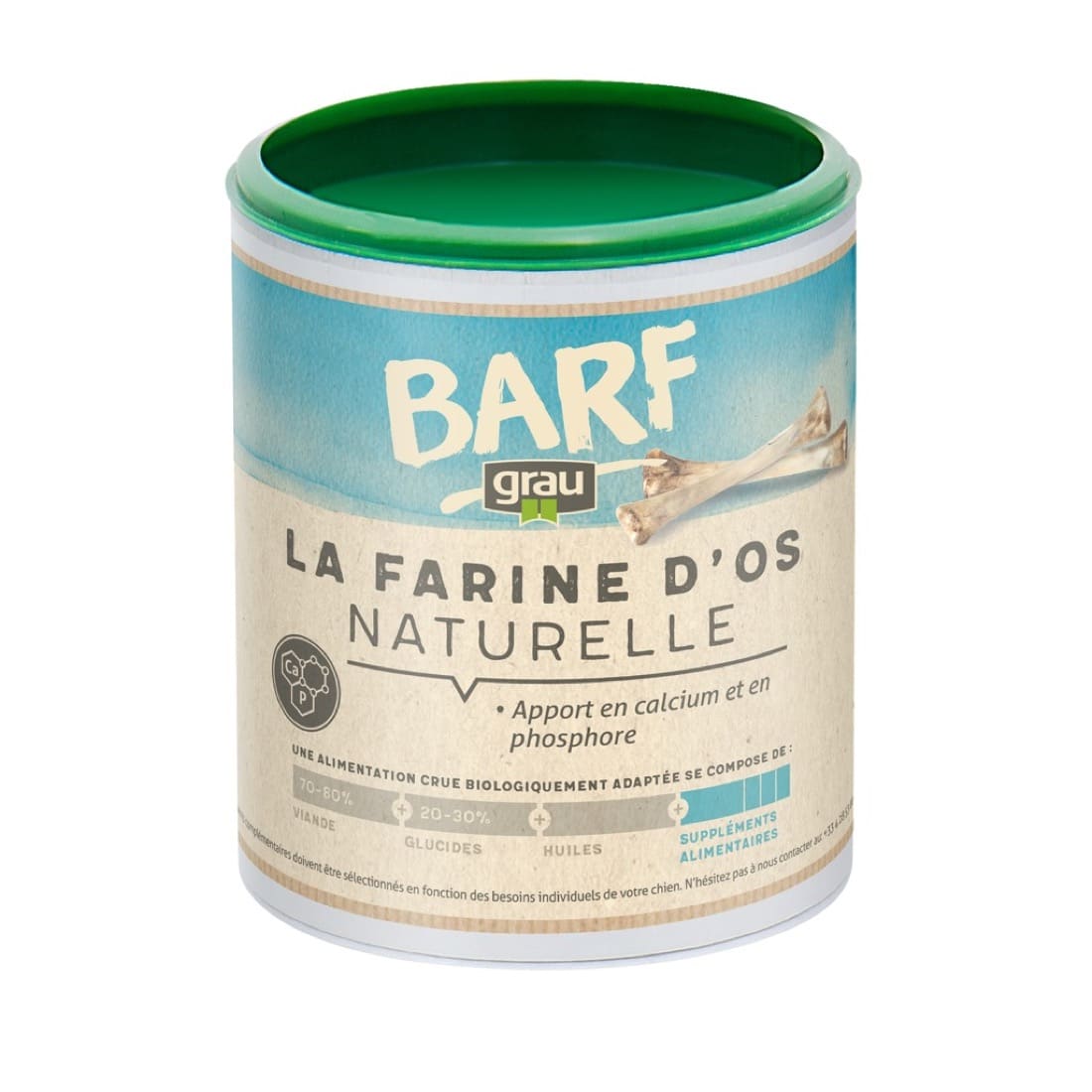Ce complément alimentaire GRAU est composé exclusivement d'os de bœuf moulus avec soin afin de former une farine idéale riche en calcium et en phosphore à mélanger à la nourriture des chiots et chats. Cette poudre renforce l'ossature et le squelette grâce à un apport supplémentaire en calcium pour compléter la nourriture quotidienne, notamment l'alimentation fraîchement préparée ou de type BARF. Ce complément naturel en calcium pour chiens et chats est riche en minéraux et en oligoéléments. L'apport en calcium, en minéraux et en oligoéléments est important pour le développement du squelette de votre chien ou chat et pour lui assurer une mâchoire puissante, particulièrement en période de croissance.