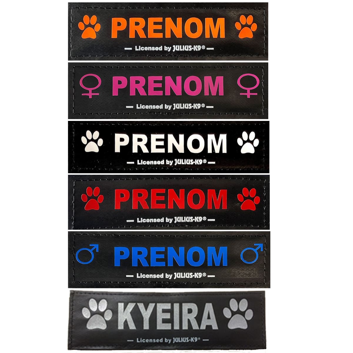 Personnalisez votre harnais Julius-K9. Il existe des scratchs Julius-K9 personnalisés avec des textes types (SECURITY, POLICE, PRINCESSE, BOULE DE POILS...) et des scratchs Julius-K9 personnalisables avec choix du texte pour une personnalisation plus poussée (nom du chien, téléphone...). Vous pouvez ainsi choisir un collier chien personnalisé ou un harnais chien personnalisé ici !